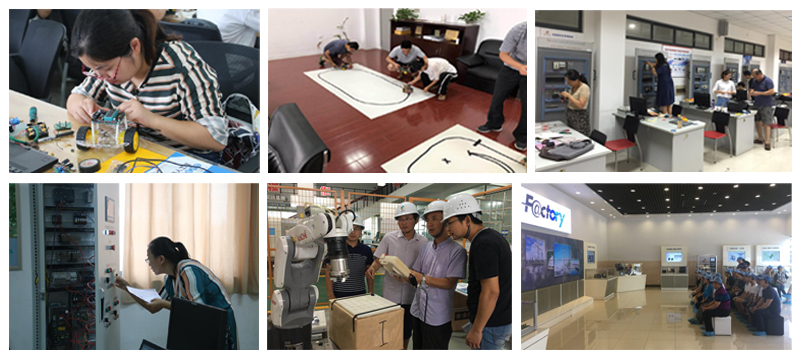 本次培训共分三类,一类是适应从事电气工程及其自动化、自动化、机器人工程或机电一体化等专业专任教师的《电气与自动化技术》培训班,主要是进行国际一线品牌电气自动化产品(包括LV、PLC、HMI、VVVF、SV、BUS)的系统集成应用;第二类适应从事电工电子专业基础课程老师的《电子系统综合设计与训练》培训班,主要是学会小型电子系统产品的设计实现,PCB软件的设计与硬件制作等;第三类是适应新办机器人工程、智能制造工程专业专任教师的《工业机器人技术》培训班,主要是学习工业机器人(ROBOT)的操作编程与系统应用实践等。