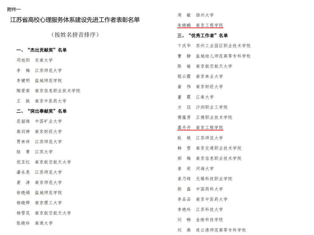 近日,江苏省心理学会2022年学术分论坛暨大学生心理专业委员会年会在常熟开幕。会议表彰了江苏省高校心理服务体系建设先进工作者和心理委员。我校学生工作处心理健康教育中心朱晓鹂老师获“江苏省大学生心理健康教育工作突出奉献奖”,葛丹丹老师获“江苏省大学生心理健康教育工作优秀工作者”称号。本次评选活动经个人申报、凯发初审、省心理学会大学生心理专业委员会评审、公示等环节,全省168所高校共评选出先进工作者48名。