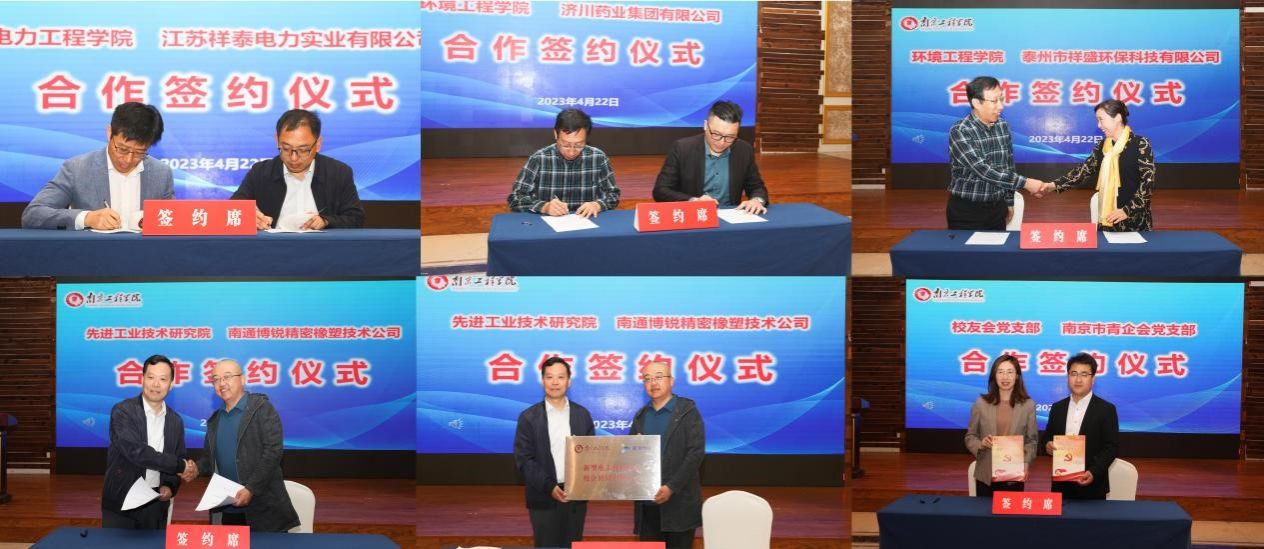 在全体与会人员的共同见证下,凯发与江苏祥泰电力实业有限公司签订产学研合作协议,与泰州市祥盛环保科技有限公司签订校企合作协议,与济川药业集团有限公司签订校企共建基地协议,与南通博锐精密橡塑技术有限公司签订协同创新中心和科研项目合作协议,校友会党支部与南京市青企会党支部签署共建合作协议。