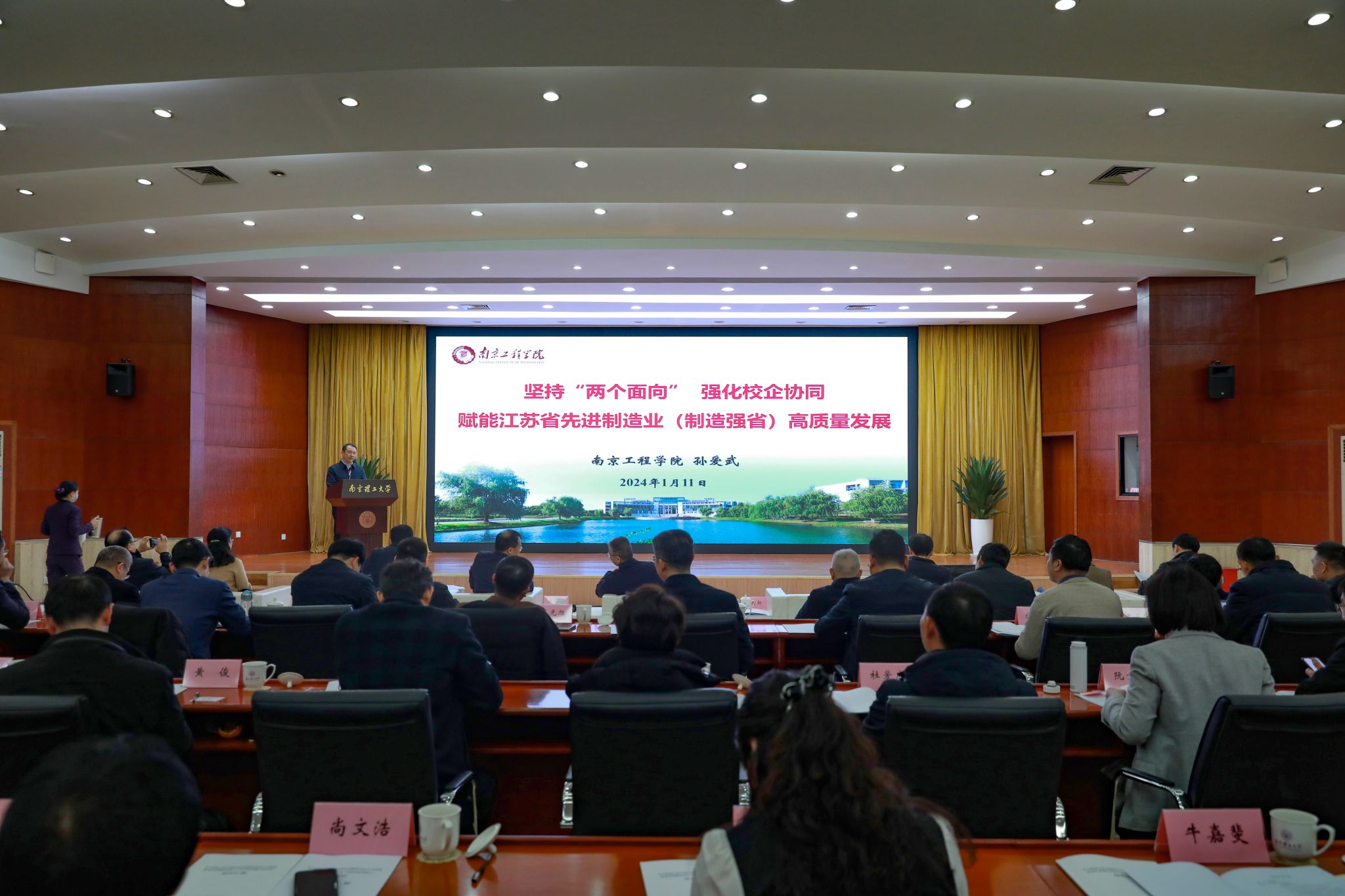 1月11日,由中共江苏省委研究室、江苏省工业和信息化厅、南京理工大学联合主办的学习贯彻习近平新时代中国特色社会主义思想推动先进制造业政产学研用深度融合研讨会在南京举行。工业和信息化部原党组成员、总工程师田玉龙,省委副秘书长、省委研究室主任周进,省工业和信息化厅厅长朱爱勋,南京理工大学党委书记张骏,我校党委书记孙爱武等出席研讨会。