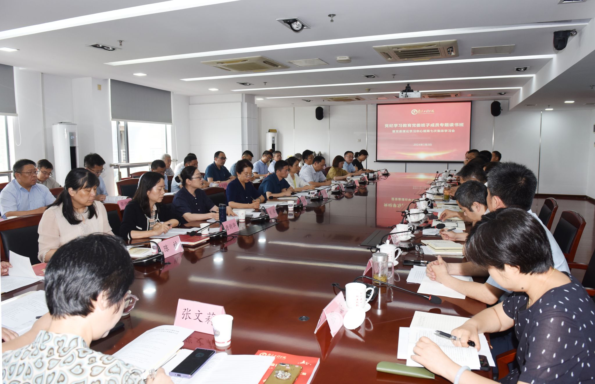 党委班子成员张玉清、赵文祥带领与会人员学习了《摘编》部分内容。会议还传达学习了习近平总书记在全国科技大会、国家科学技术奖励大会、两院院士大会的重要讲话精神以及省级层面党纪学习教育相关要求,以观看视频的形式学习了习近平总书记在山东考察时、在青海考察时、在二十届中共中央政治局第十四次集体学习时的重要讲话精神以及中共江苏省委十四届六次全会精神。