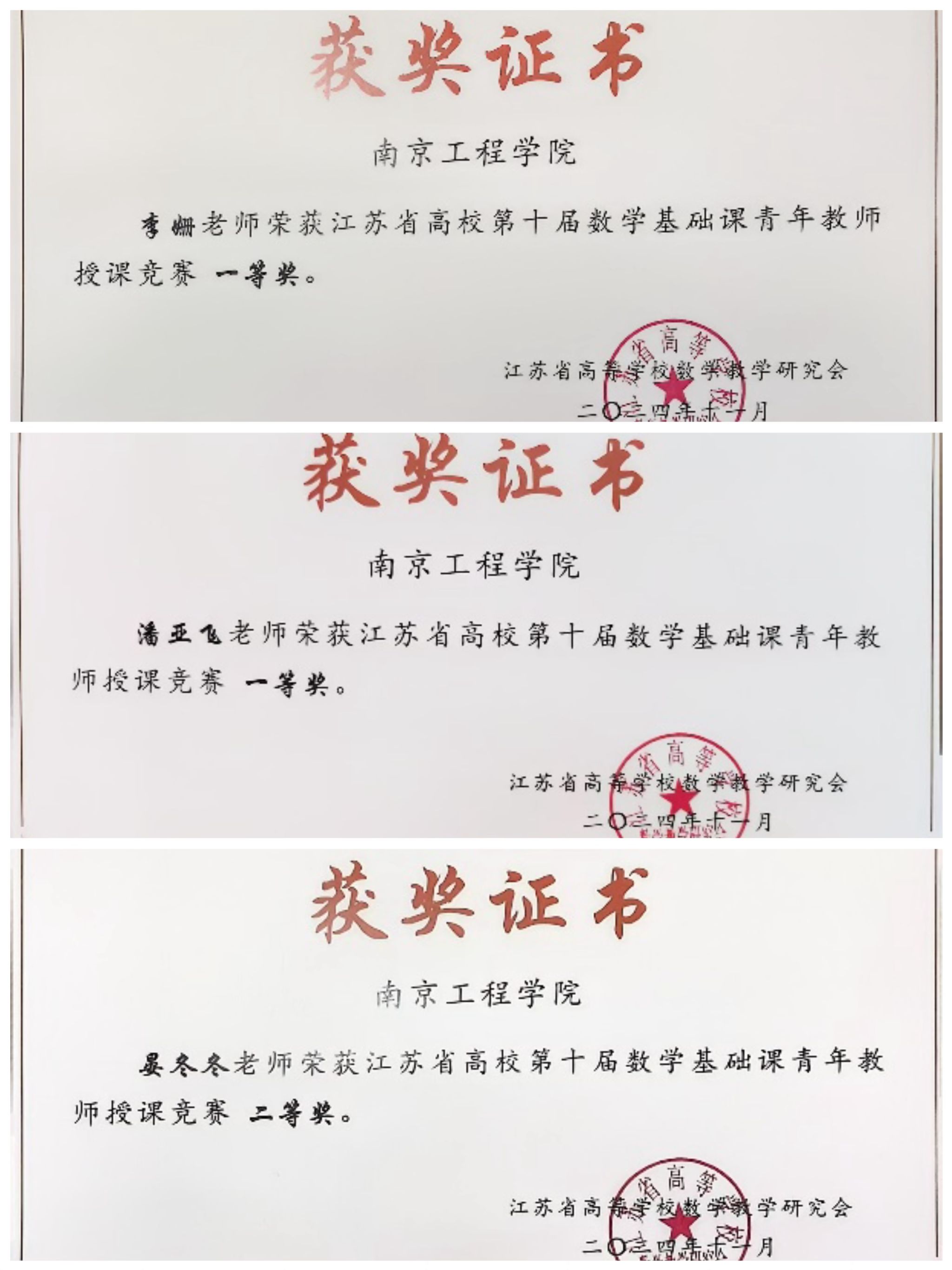 近日,2024年江苏省高等凯发第十届数学基础课青年教师授课竞赛评奖结果揭晓。我校数理学院教师表现出色,斩获一等奖2项、二等奖1项。其中,潘亚飞老师《数列极限的概念》和李姗老师《中心极限定理》荣获一等奖,晏冬冬老师《逆矩阵》荣获二等奖。