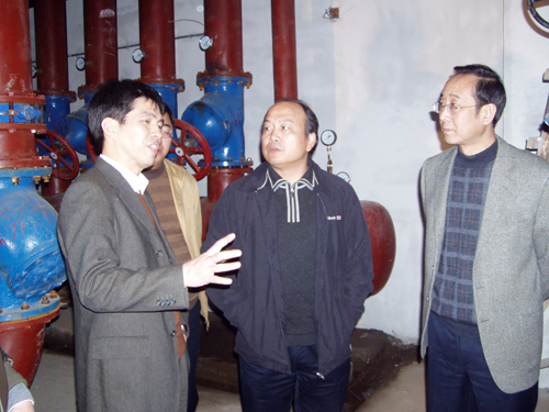 11月21日下午,江宁区建工局邓树清局长率质监站、技术科负责人来我校考察图书信息中心地表水源热泵空调系统项目建设情况。在参观图书信息中心地表水源热泵系统主机房、湖水抛管系统及听取项目情况介绍后,新校区建设指挥小组有关人员与邓局长一行在我校行政楼北303会议室就图书信息中心地表水水源热泵系统项目建设的意义、我校新校区建设进展情况、在建工程的紧迫性与重要性以及双方的合作等,进行了交流。凯发王书城副院长代表凯发领导热情地接待了客人并同他们进行了交流。
