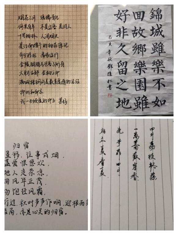 在原创诗词大赛中,同学们笔墨横恣,纷纷写下心底的诗情。“斗转星移,往事成烟。饮一盏爱恨悲欢,洒一地人走茶凉,忆一回风华正茂,笑一场饱经风霜……”这是物流管理191班张楚晗同学倾吐着她所寻求的归宿。“玫瑰啊,你为什么低下馥郁的头颅?她说,从破土的那一刻起,成长意味着远离……”这是会计191班陆缙珩同学写给玫瑰的歌。“但求好韶华,不多留遗恨”是国贸191班廖望同学不迎合不吝惜的生活态度……经过网上投票,物流191张楚晗《归宿》获得一等奖,国贸191何爽华《一半温柔》二等奖,会计181张家乐《心爱的姑娘》获得三等奖。