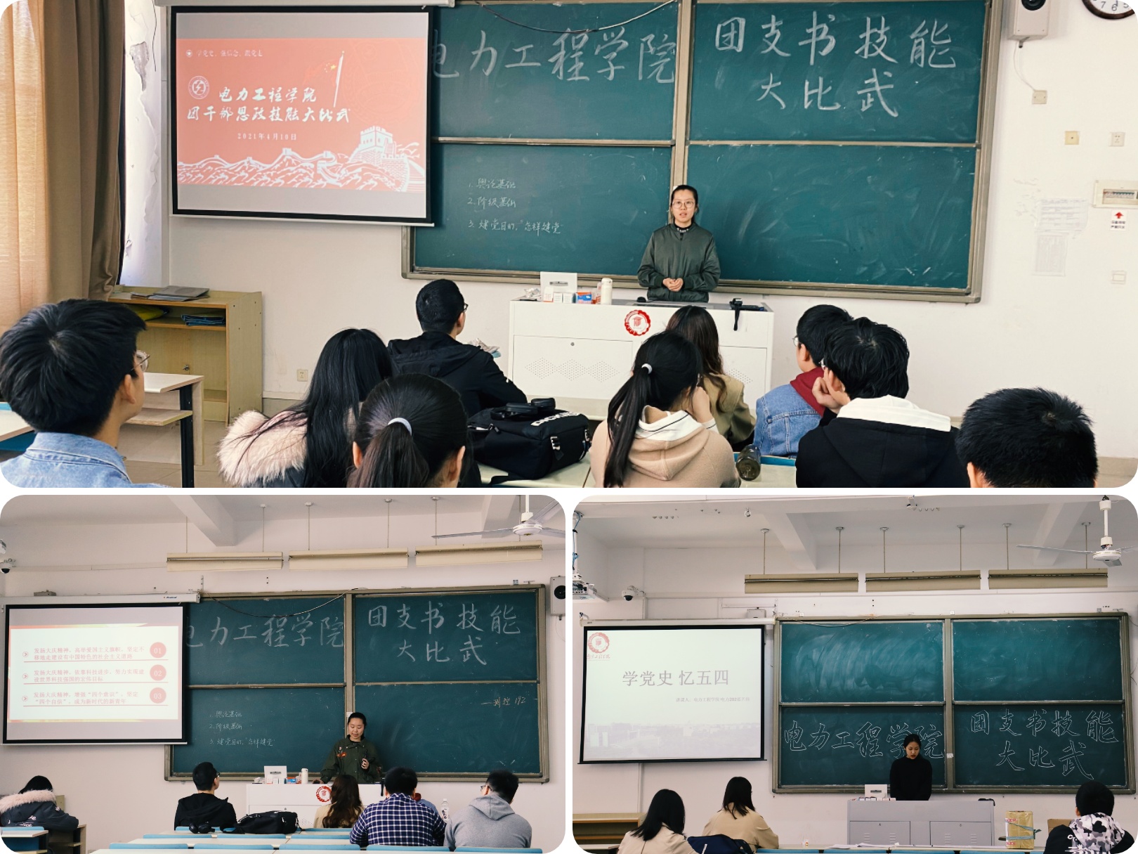 4月10日,该院在教学楼南馆开展了“学党史,强信念,跟党走”团干部思政技能大比武实战考核,全院基层团支部书记参与考核,学院学生支部书记和12名学生党员担任考官。考核共有三轮,分别是“党史和团务知识竞答”、“团课展示”和“学党史主题团日活动策划展”。“什么是红船精神?”、“团的三会两制一课是什么?”竞答环节中团支书一个个问题对答如流。团课展示环节,团支书们各显风采。智网181团支书为大家上了一节主题为“什么是五四精神”的团课,她从“人民纪念碑下的浮雕”引入团课主题,讲述了“爱国”“民主”“进步”“科学”的五四精神内涵,生动的语言、精美的PPT,使得台下评委纷纷为她点赞。团日策划展环节中,各团支书针对此次团日活动主题划出重点、展开思考,电力202团支书运用思维导图进行活动策划,展示了该支部团日活动思路和举措,良好的语言表达能力和组织策划能力,展现了当代青年团干部应有的过硬本领和青春力量。经过激烈角逐,电力202、建筑电气201、智网181和继保192班的四位团支书考核优秀,其余团支书均考核合格。