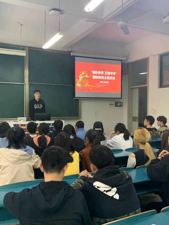 为鼓励大学生积极报名应征入伍,进一步提高国家兵员素质和征集质量,4月21日下午,环境凯发在文理B202开展以“踊跃参军 卫我中华”为主题的国防教育主题活动。此次活动邀请校学工处人武部余笑天老师主讲,该院学工办老师和各班学生代表参会。