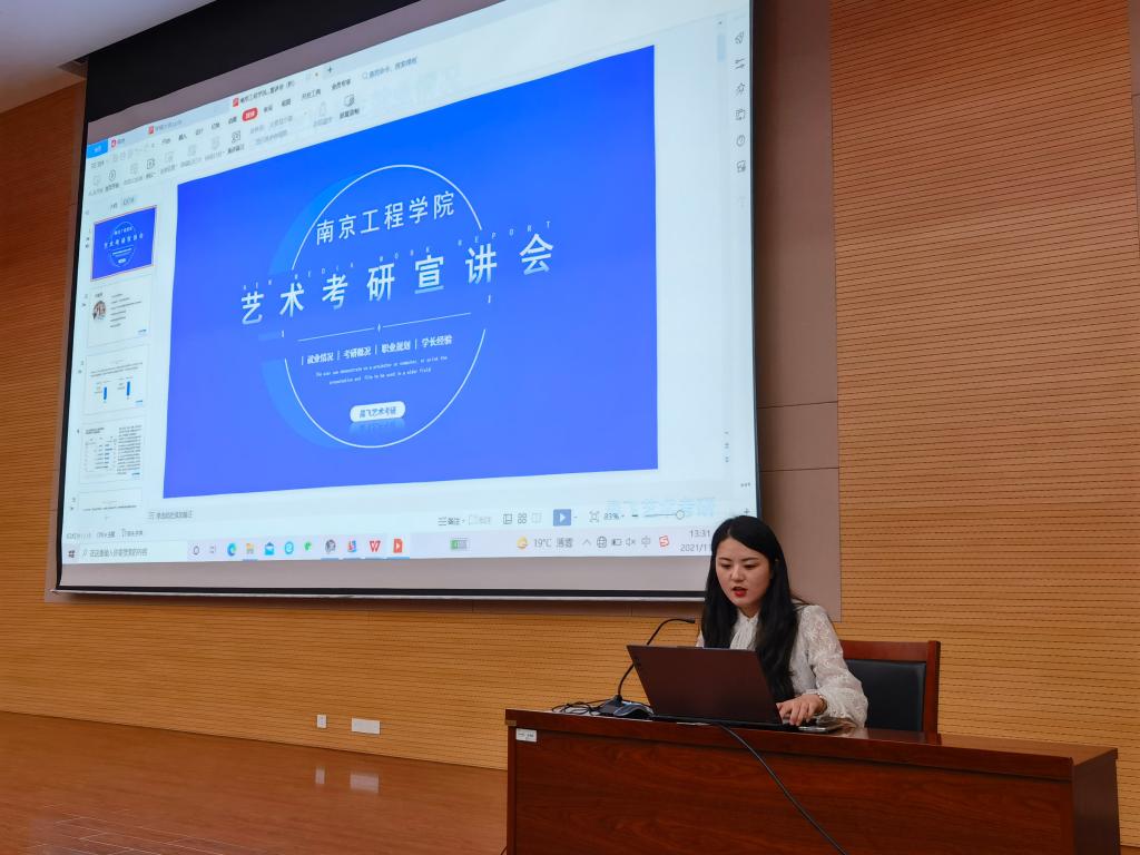 为激发同学们的考研热情,提升同学们的考研信心,11月3日,艺术与设计学院特邀校友企业南京汇博晨飞艺术培训有限公司考研辅导专家刘丽慧老师为该院学子进行考研政策宣讲。2019级有意向考研的学生聆听了讲座。