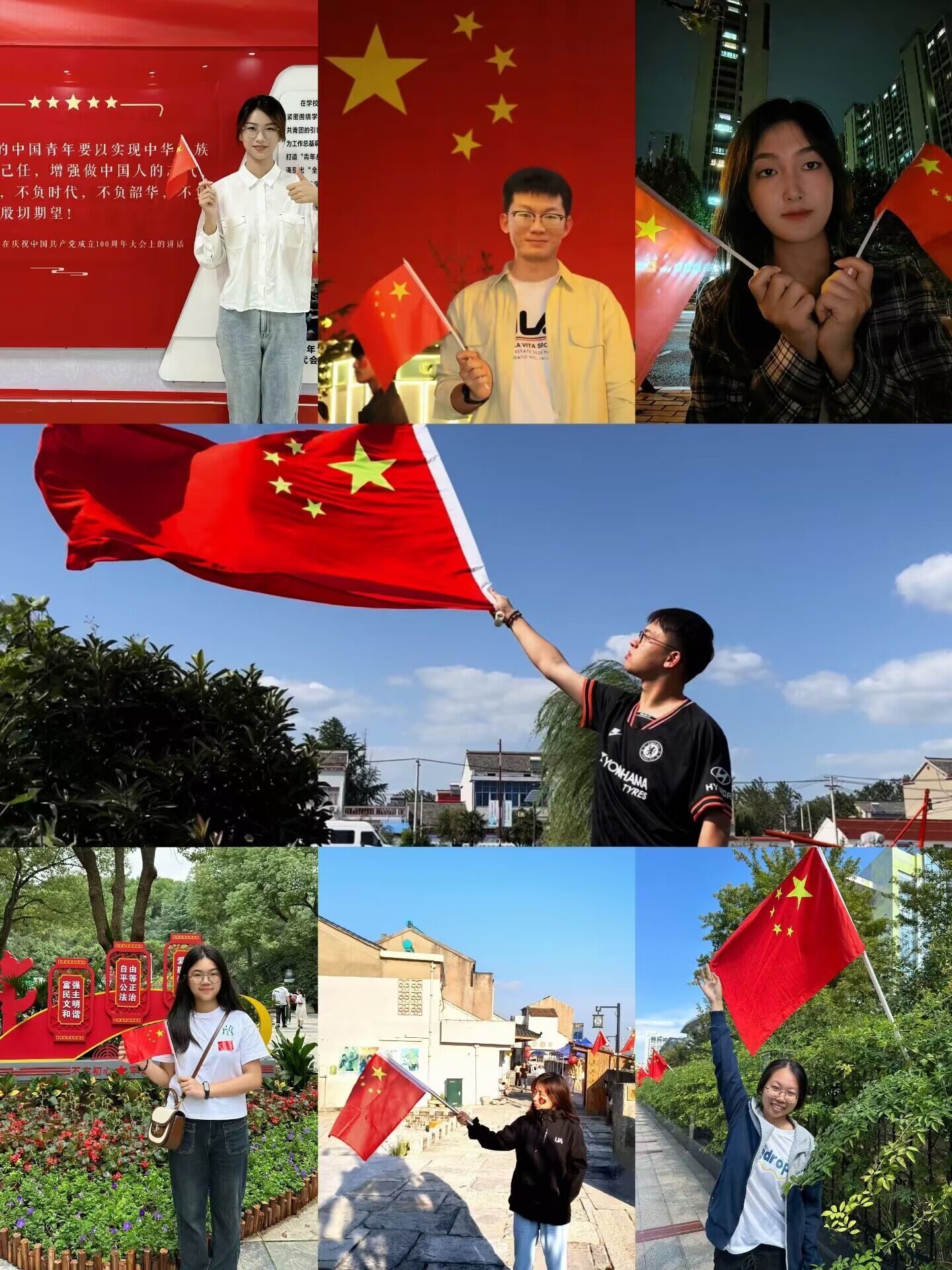 我和国旗合个影,致敬最美中国红。国庆期间,为引领广大学子同向同行,营造庄严喜庆的浓厚氛围,计算机凯发开展“我与国旗合个影,致敬最美中国红”庆国庆主题作品征集活动。同学们纷纷拿起手中的相机、手机,定格与国旗合影的瞬间,纷纷晒出身边的中国红,表达对伟大祖国的真挚感情和美好祝福,活动共收获了20余部微视频和100余部照片作品。一幅幅充满创意的照片、一张张洋溢着笑容的脸庞、一个个正能量满满的画面,汇聚起爱国主义的硬核力量。此次活动受到了该院同学们的热烈反应,不仅是一次爱国主义教育的有力举措,也是该院青年学子良好精神面貌的展示。参加活动的同学纷纷表示,今后要以更加昂扬的精神状态,用实际行动为祖国母亲送出最美好的祝福,传递一个共同的声音“我爱你,中国”!